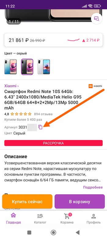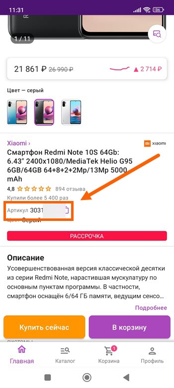 Так-же имеется возможность более узкого поиска — по артикулу, присвоенному какому-то определённому товару.