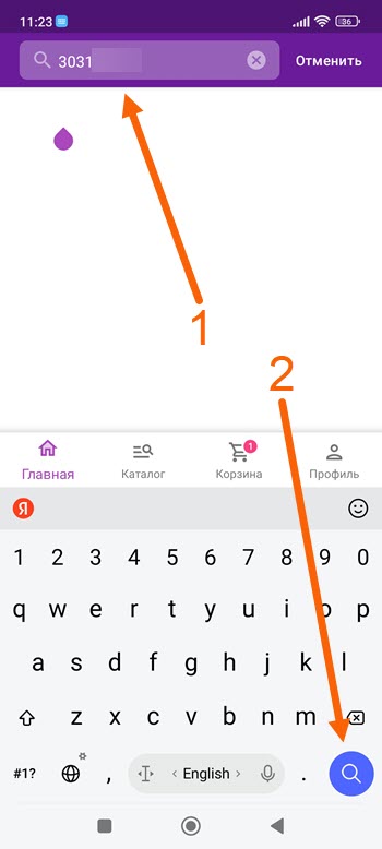3. Остаётся вставить скопированный номер в верхнюю строчку, и нажать на кнопку в виде лупы, на мобильной клавиатуре.
