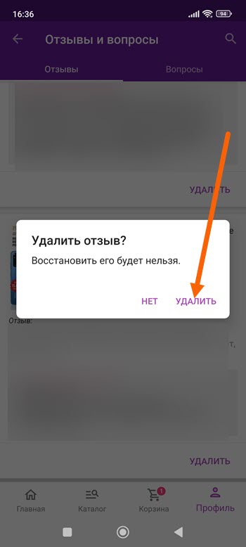 4. В открывшемся окне, подтверждаем выбранные действия. Обратите внимание что восстановить его не получится.