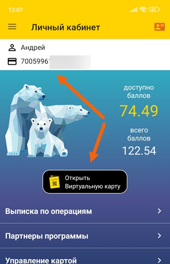 3. В открывшемся окне указан QR код который можно предъявить оператору, а так-же номер нашей карты.