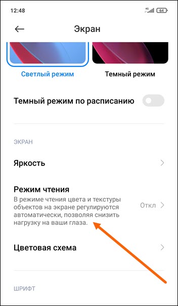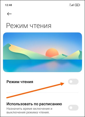 А также установить расписание включения и отключения режима чтения, делается это следующим образом.