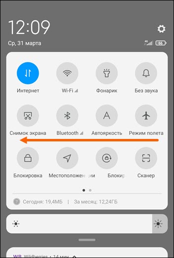 1. Опускаем шторку уведомлений, свайпом вниз.