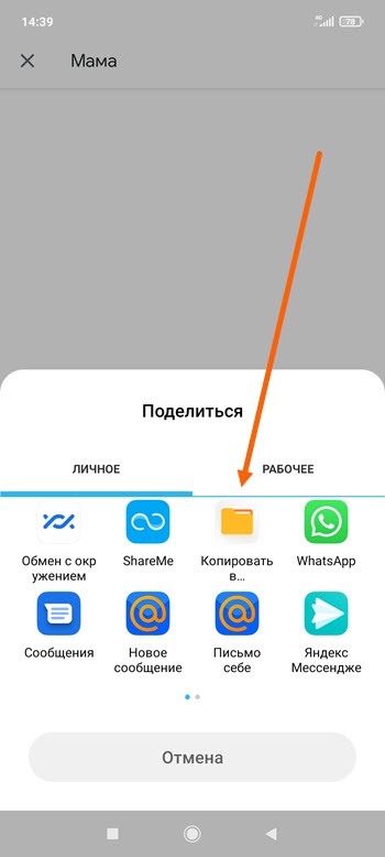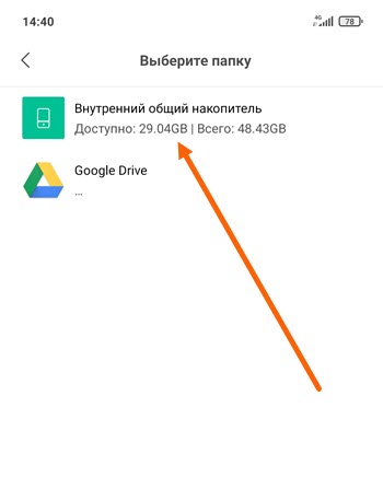 3. Выбираем «Внутренний общий накопитель», так-же имеется возможность сохранить на Гугл диск.