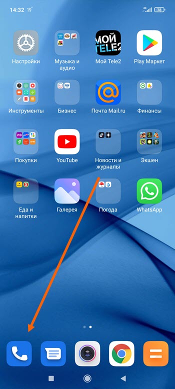 1. Заходим в звонилку нажав на соответствующую кнопку.