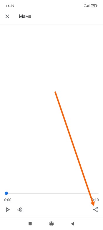 1. Прослушав и убедившись что это нужный аудиофайл, жмём на кнопку поделится.