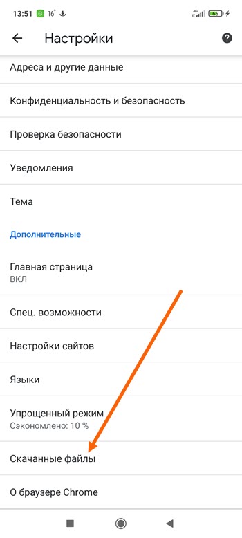 3. В самом низу настроек, открываем раздел «Скачанные файлы».