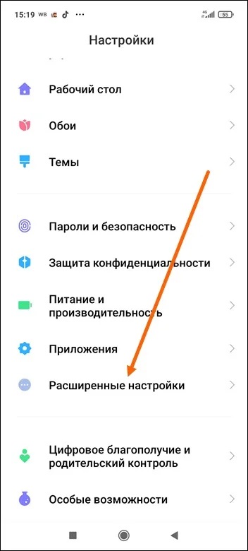 2. Далее переходим в «Расширенные настройки».