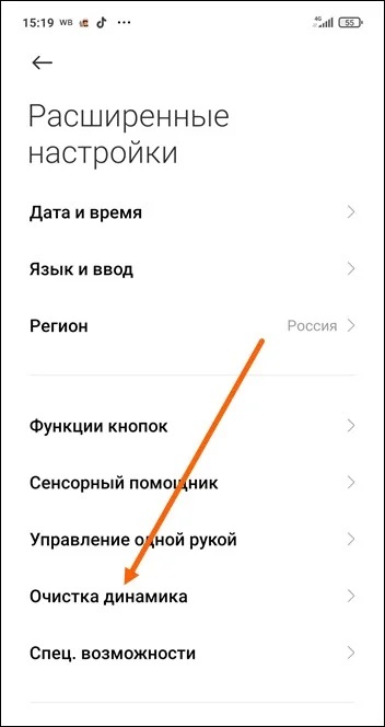 3. Находим пункт «Очистка динамика» и открываем его.