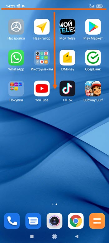 1. Опускаем шторку уведомлений, свайпом вниз.