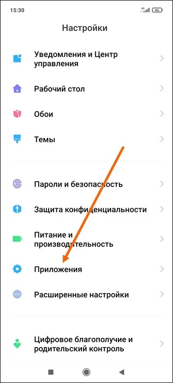 2. Находим раздел «Приложения» и открываем его.