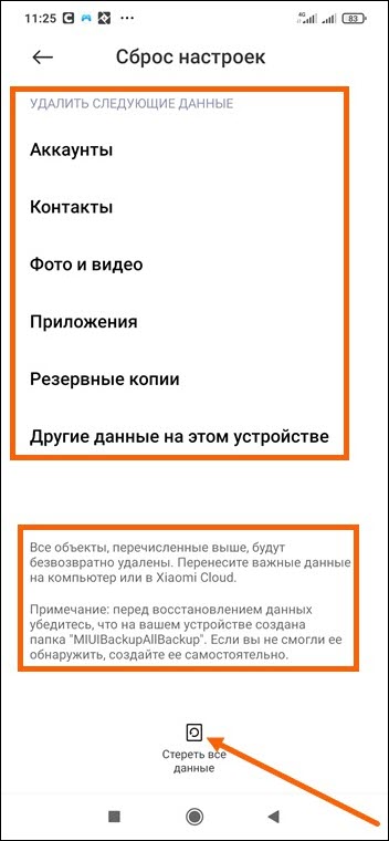 Внимание сброс приведёт к полной потере всех данных на устройстве.