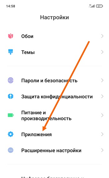 2. Находим раздел «Приложения» и открываем его.