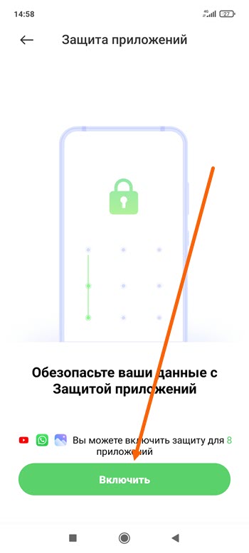 4. На этом шаге, нам предлагают включить защиту (поставить пароль на 8 программ) жмём «Включить».