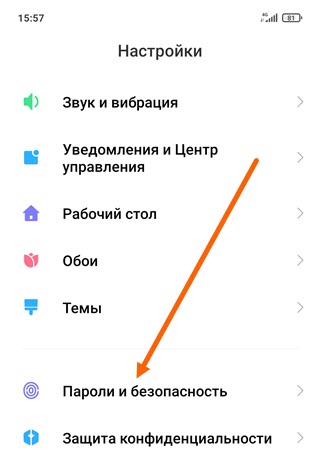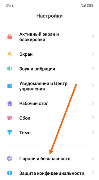 2. Переходим в раздел «Пароли и безопасность».