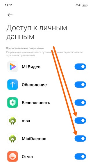 3. Деактивируем msa и Miui Daemon.