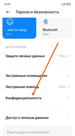3. Открываем подраздел «Конфиденциальность».