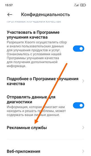 4. Жмём на пункт «Рекламные службы».