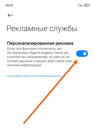 5. Деактивируем пункт «Персонализированная реклама».