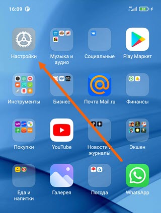 1. Заходим в «Настройки».