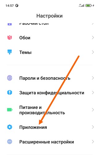 2. Далее в раздел «Приложения».