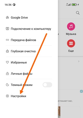 3. Далее переходим в настройки.