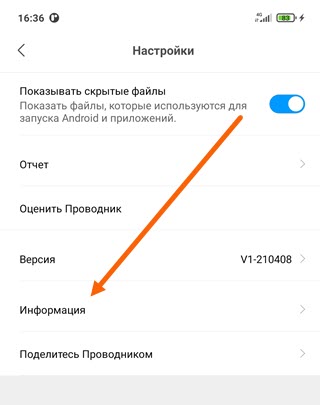 5. Далее переходим в раздел «Информация».