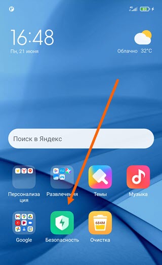 1. Открываем приложение «Безопасность».