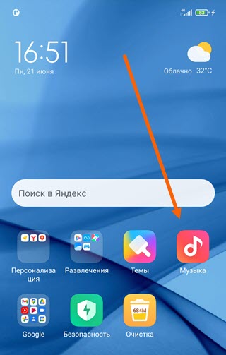 1. Открываем музыку.