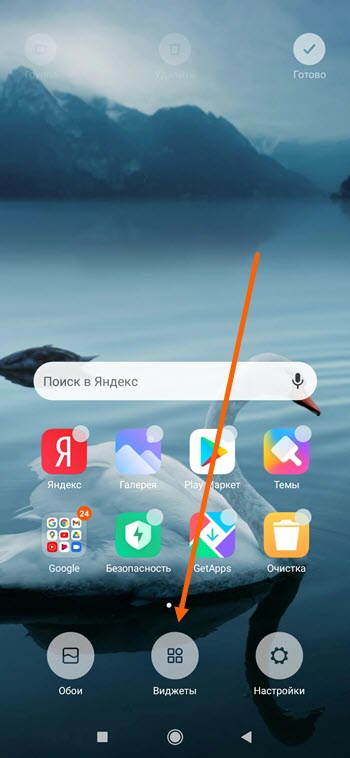 2. Внизу появилась кнопка «Виджеты» жмём на неё.