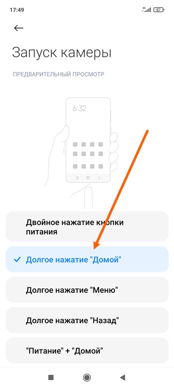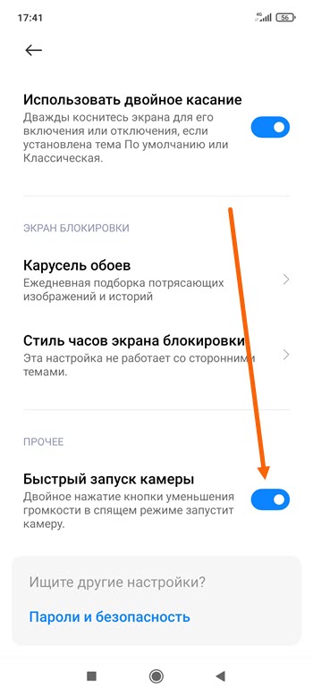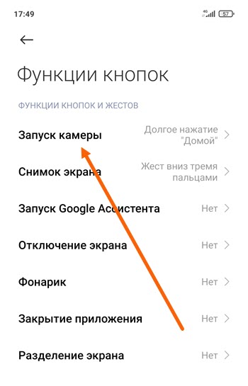 Теперь после двойного нажатия на клавишу уменьшения громкости, автоматически запустится камера.