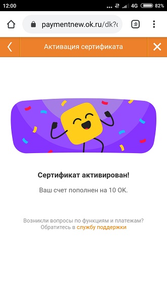 13. Перед нами открылось окно с сообщением, об успешной активации сертификата.
