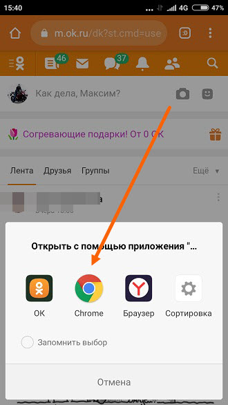 3. В открывшемся окне, выбираем тот же браузер, с которого открыли данный сайт, у меня это Гугл Хром.