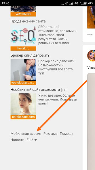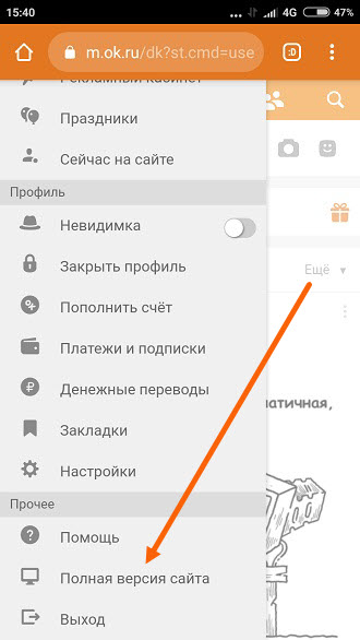 Как перейти на полную версию в Одноклассниках с телефона