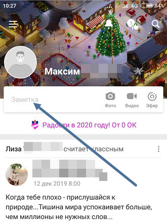 В нём, можно описать своё настроение, указать род деятельности, хобби, написать поздравительный текст, который увидят друзья и родственники и многое другое.