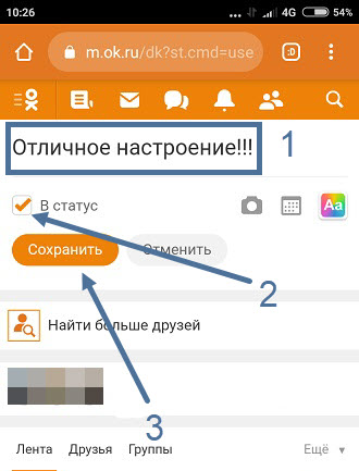 Как поставить статус в Одноклассниках