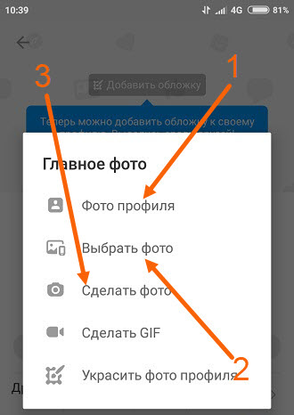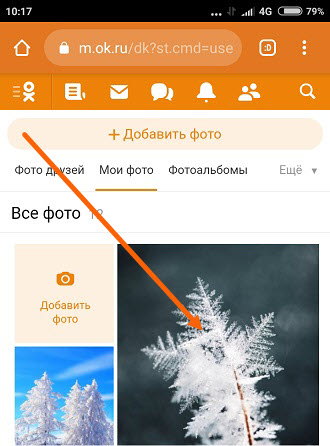 - Первый вариант — выбрать изображение, из загруженных в Одноклассники.
