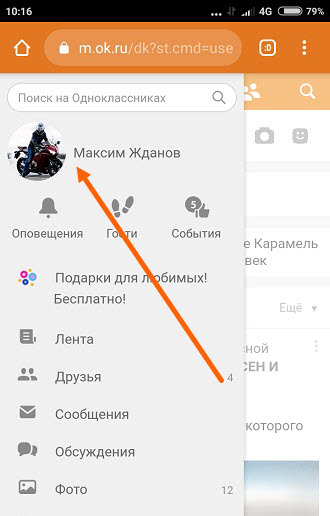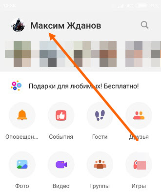 2. Переходим в свой профиль, нажав на имя с фамилией, либо аватарку.