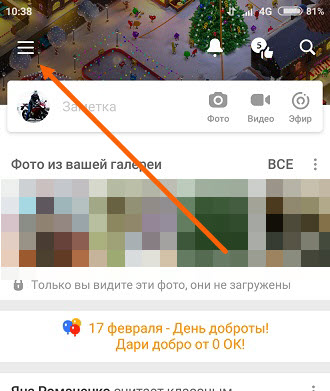 Запускаем приложение ОК, далее жмём на кнопку меню (три горизонтальные полоски).