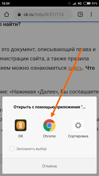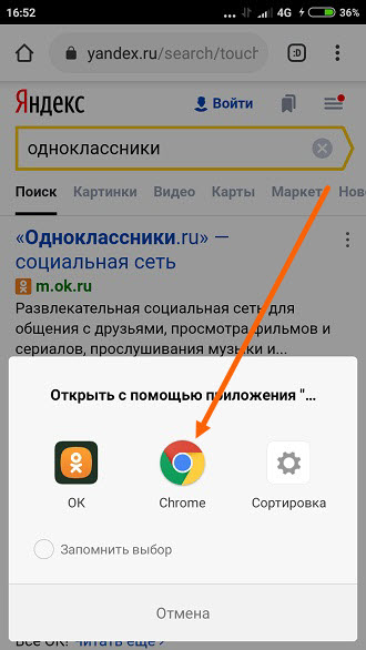 6. Во вновь открывшемся окне, выбираем тот же браузер, с которого зашли в мобильную версию.