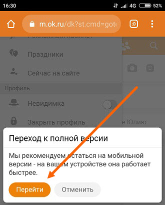 5. В открывшемся окне «Переход к полной версии», жмём «Перейти».