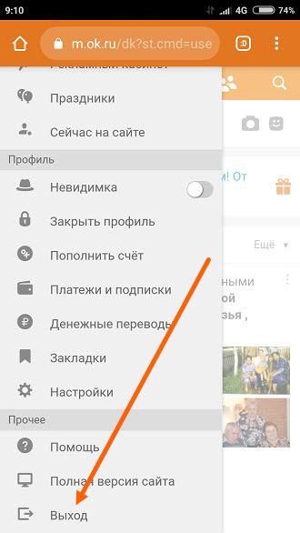 Как выйти из Одноклассников на телефоне