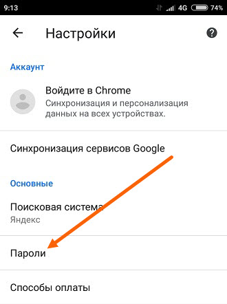7. Переходим в раздел «Пароли».