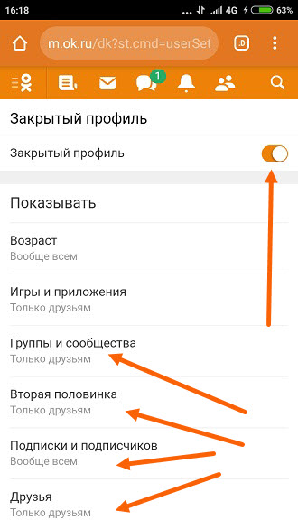 Как закрыть профиль в Одноклассниках с телефона