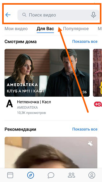 Строка поиска видео-роликов, расположилась в верху раздела «Видео».