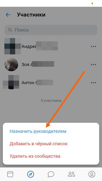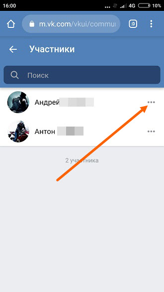 3. Напротив нужного участника, которого хотим сделать ещё одним админом, жмём на иконку «Три точки».