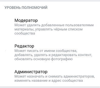 На выбор имеется три должности, модератор, редактор и администратор, у каждой из которых, есть свой уровень полномочий.