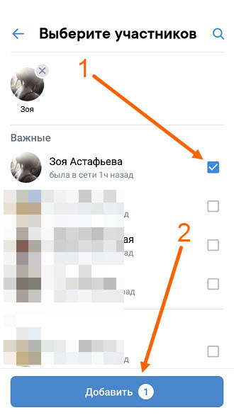 4. Выделяем галочкой нужных собеседников, после жмём на соответствующую кнопку.