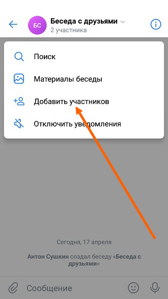 Как добавить человека в беседу в ВК