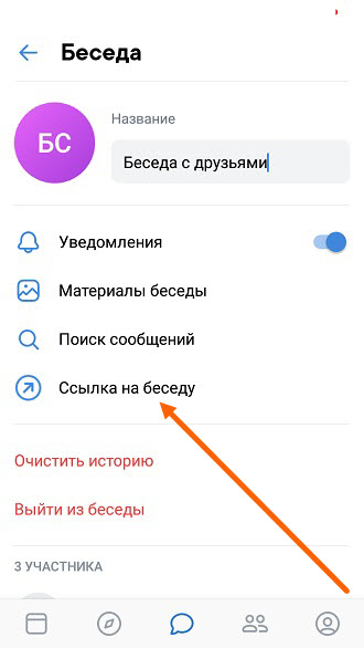 Пройдя по которой, человек окажется в беседе. Для того чтобы скопировать ссылку, либо поделится ей, необходимо сделать следующее.