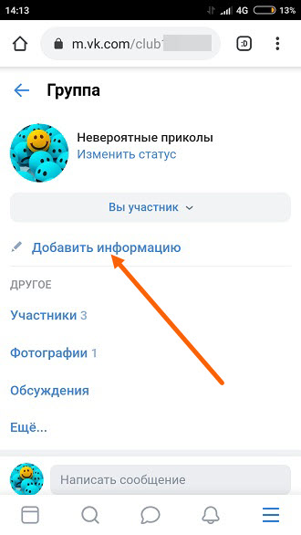 2. Заходим в свою группу, далее жмём на кнопку «Добавить информацию».